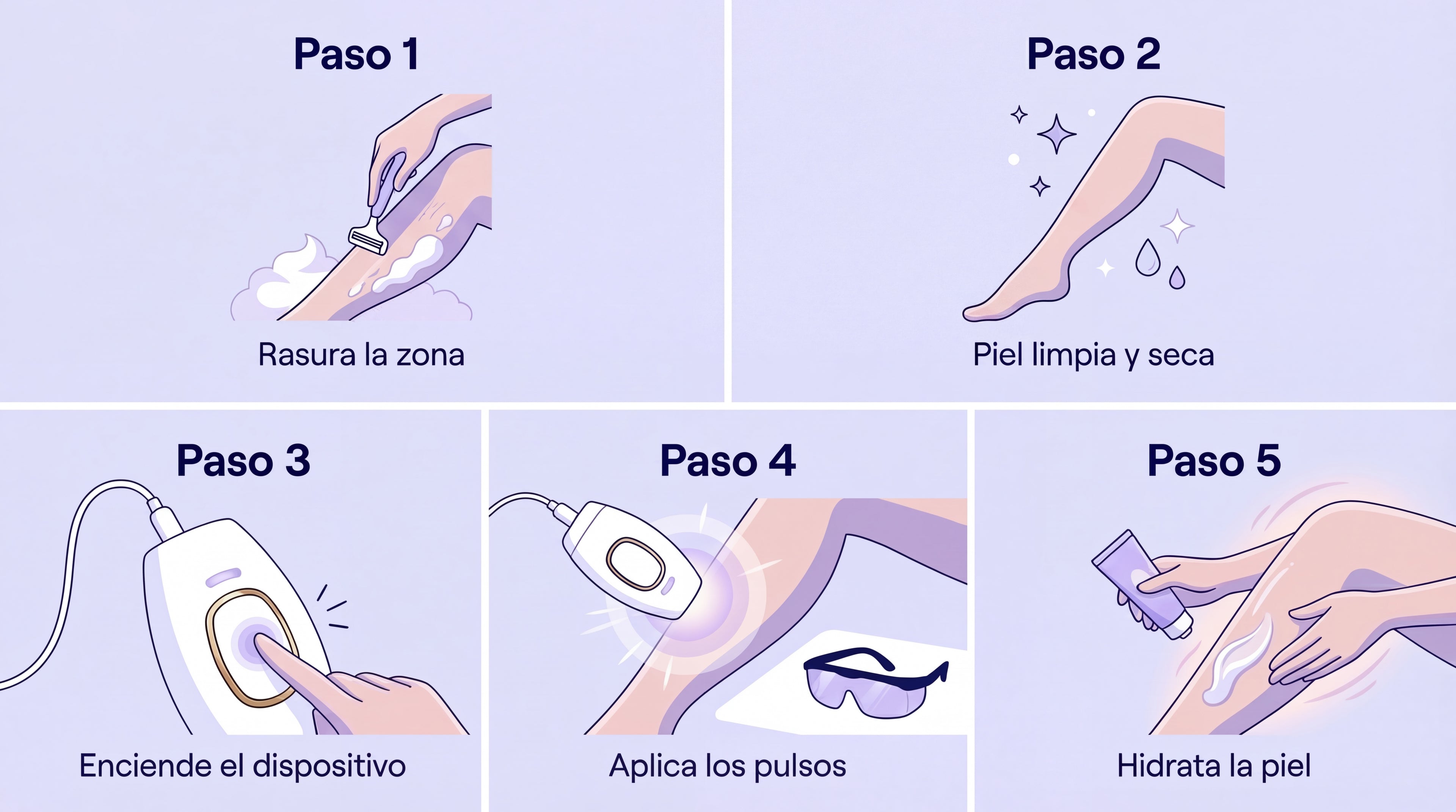 - Depilación cómoda desde casa, sin citas ni gastos en clínicas.